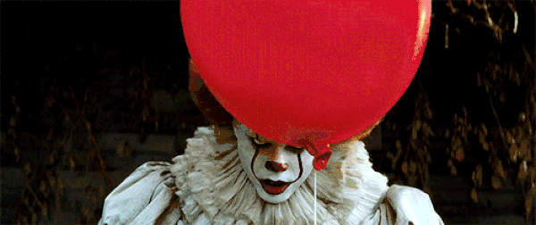 • 恐怖元素:摇晃的红气球,小丑嘴边的殷红