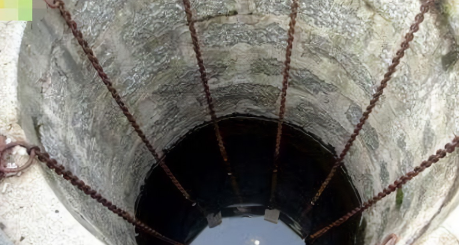 但是,地下暗河水压比较高,人们为了不让地下水喷涌上来,便在井中放入长长的锁链来减轻水压。