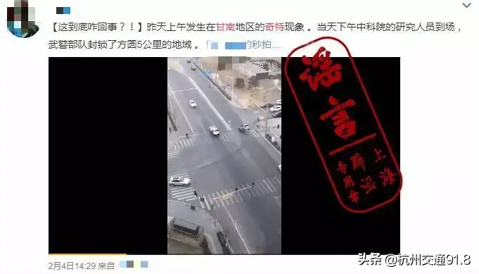 2018年2月,网上曾经流传过的一段两辆汽车忽然起飞的“灵异”视频。而当时的传言和此次的如出一辙:“7月19日上午发生在甘南地区的奇特现象,当天下午中科院的研究人员到场,武警部队封锁了方圆5公里的地域……”